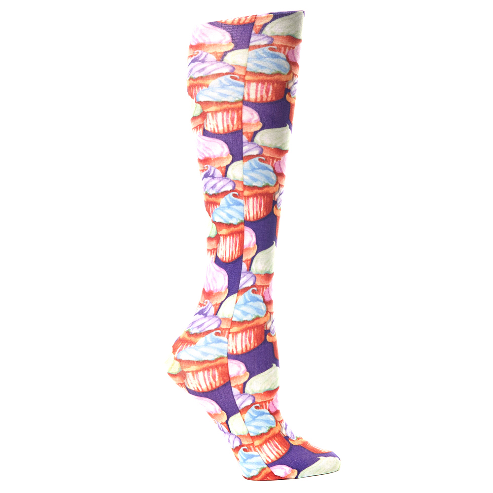 Celeste Stein Womens 8-15 mmHg Compression Sock-Purple Cupcakes | CMPS-1848 | 844857004602 | In Stock | Regular | 8-15 mmHg |